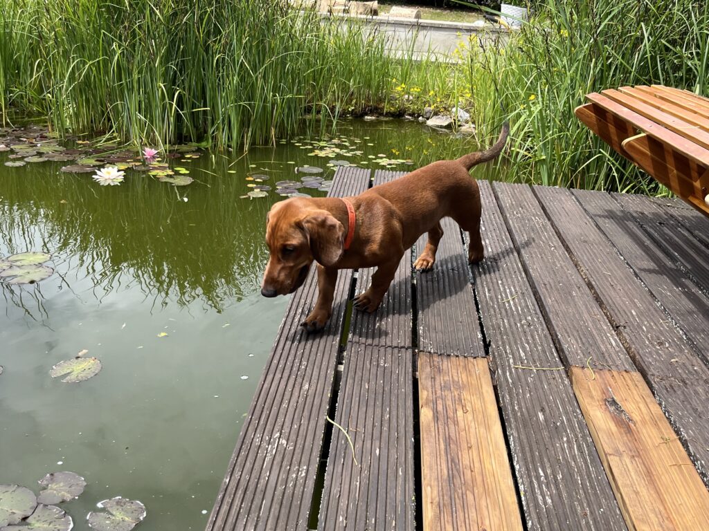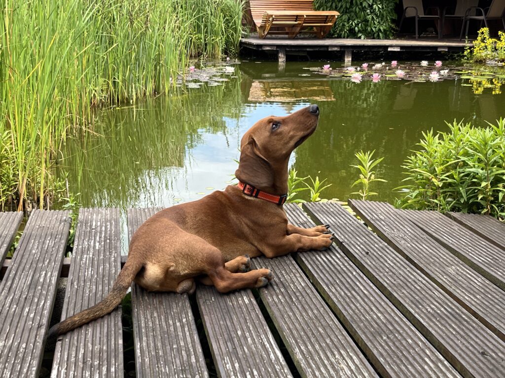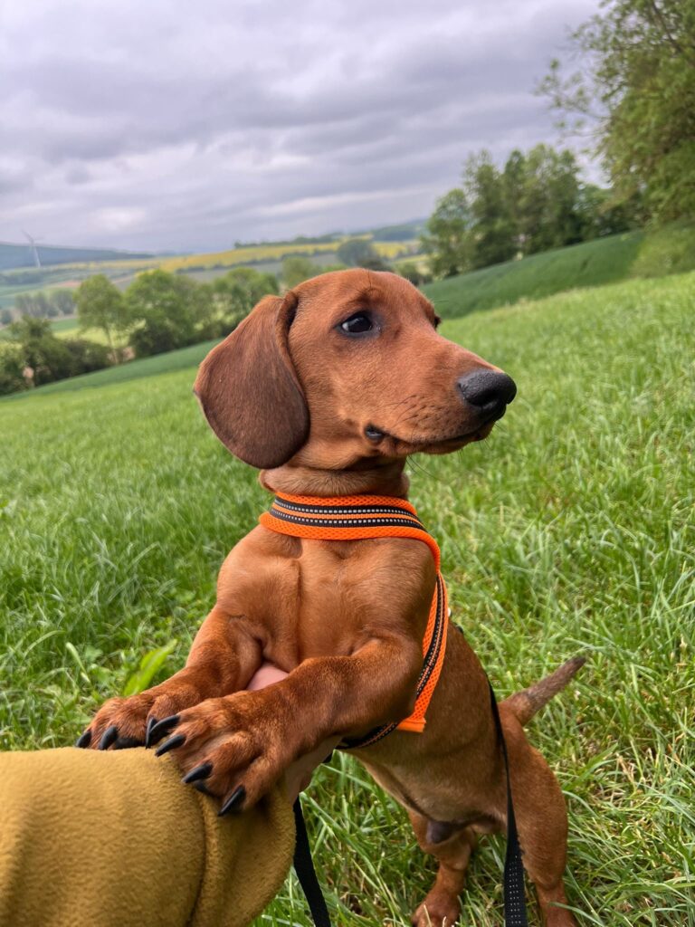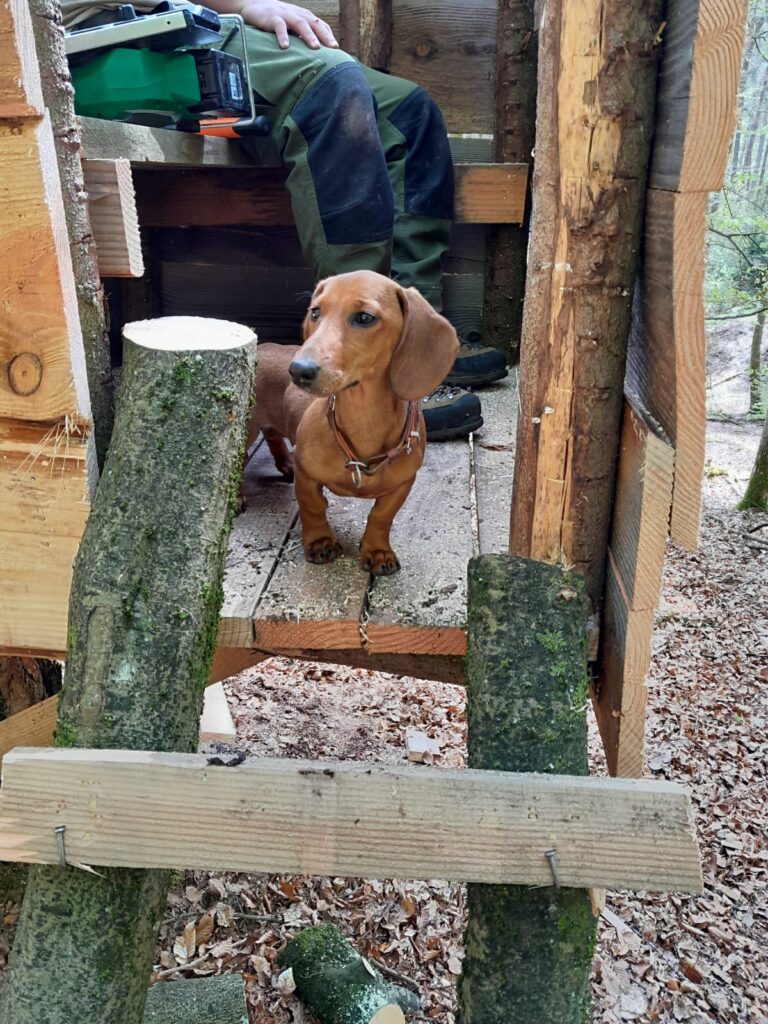 Alle zwei Tage gibt es jetzt Waldrundgänge. Alle neuen Dinge sind hoch willkommen und werden gründlich analysiert. Es ist wichtig, die Prägungsphase gerade in den ersten 3 Monaten kräftig auszunutzen. Das ist gerade für den späteren Jagdgebrauch von großer Bedeutung.
