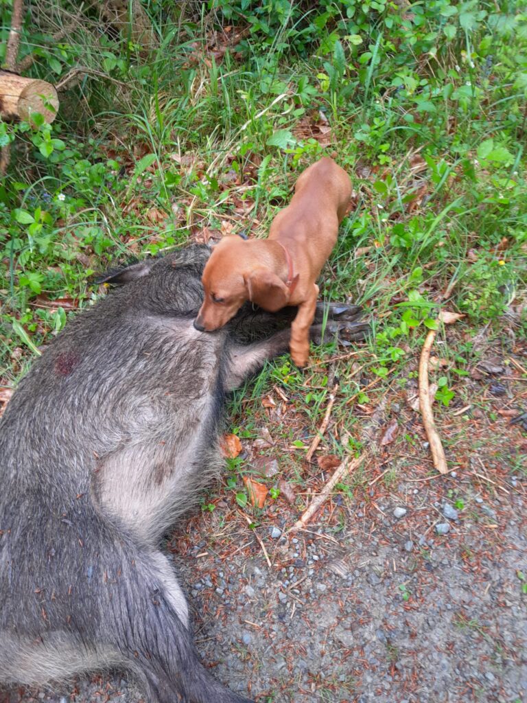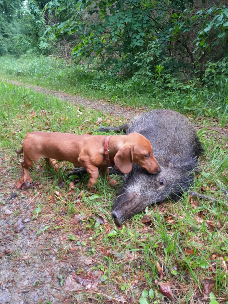 hat auch ein permanentes Ausbildungsprogramm und zeigt schon jetzt sehr guten Laut und hervorragende Schwarzwildschärfe.